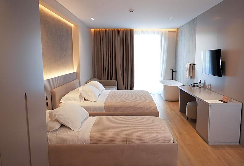 Fremhevede fasiliteter inkluderer et privat strandområde (gratis), privat parkering (gratis), Wi‑Fi (gratis), tilgang til stranden, klimaanlegg, en bar, parkering på stedet (gratis), 24-timers resepsjon, røykfrie rom, strandparaplyer (gratis), utsikt, balkong og gratis toalettartikler. Flyplasstransport er tilgjengelig mot et tillegg.